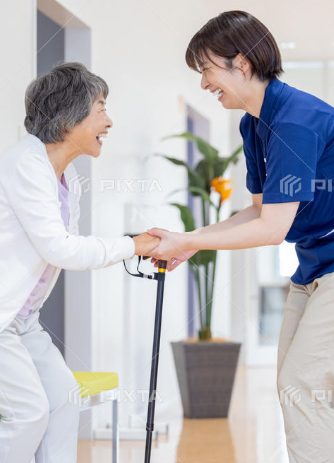 リハビリスタッフはPT(理学療法士)、OT(作業療法士)、ST(言語聴覚士)がそれぞれ1名ずつおり、利用者さんの希望に応じて、対応することができます。